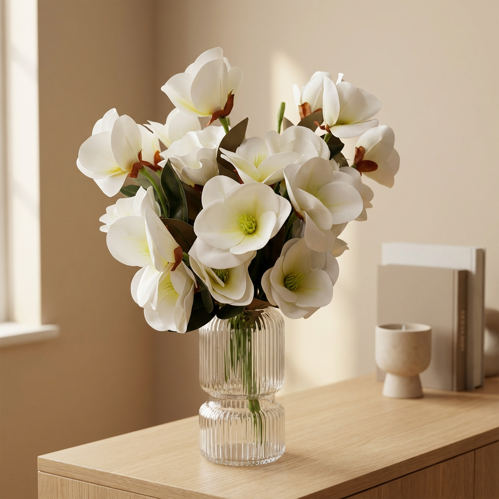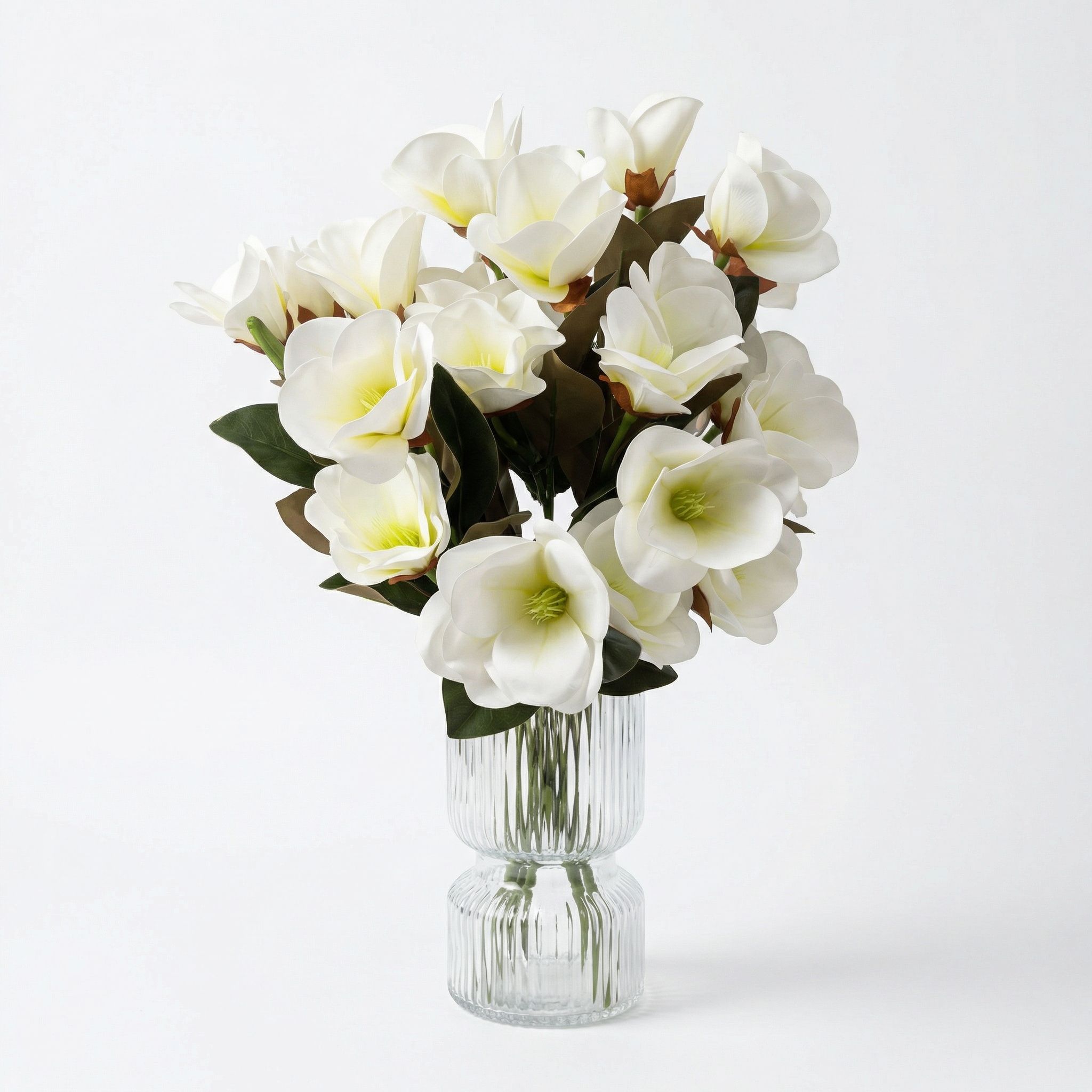 اللون : لون الورد أبيض مع أصفر فاتح داخل الزهرة